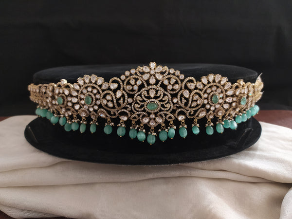 Complete your special occasion look with our floral design Victorian hip belts, crafted with precision and adorned with moissanite stones. These stunning hip belts are available in all the evergreen colors – Mint, Violet, Ruby, and Baby Pink. Perfectly designed to pair with any of our trending Victorian necklace sets, these belts add an elegant, statement-making touch to your outfit. Whether you're attending a wedding, cultural celebration, or a festive event, these belts are the perfect accessory to enhance your traditional look.