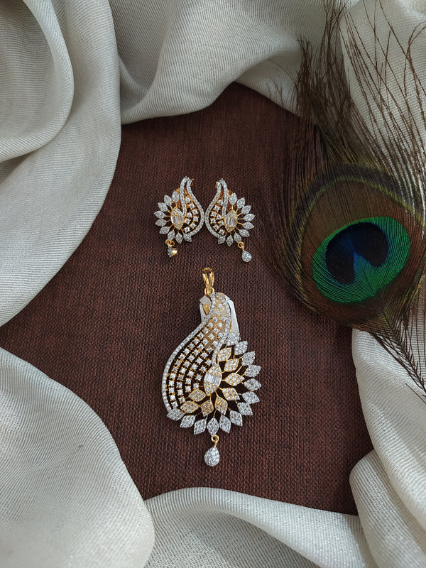 A sleek and elegant full white zircon pendant set crafted for a clean, diamond-like sparkle. Designed in two premium finishes — Silver Rhodium Finish for a classic white-metal look and Diamond Finish (Two-Tone Gold with Silver) for a luxurious diamond replica effect. Minimal yet statement-worthy, this pendant set is perfect for party wear, receptions, festive styling, or elegant everyday looks. Pairs effortlessly with sarees, gowns, kurtis, and contemporary outfits.