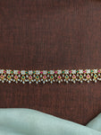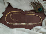 Elevate your ethnic ensemble with this stunning gold-plated zircon hip chain. The elegant combination of white, red, and green zircon stones against a gold base creates a vibrant and luxurious look, perfect for traditional occasions like weddings and festivals. This hip chain is designed to accentuate your waist, adding a regal touch to sarees, lehengas, and bridal outfits. The intricate detailing with zircon stones in contrasting colors makes it a versatile accessory for both modern and classic styles.