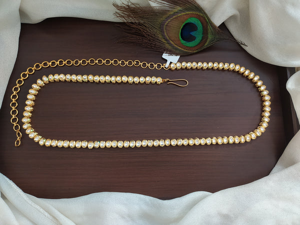Add a regal touch to your ethnic ensemble with this Kundan Adjustable Hip-Chain, crafted for elegance and versatility. Designed with intricately set Kundan stones, this waist belt enhances your traditional...