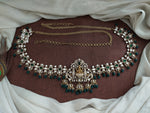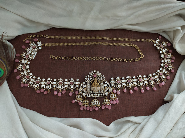 Victorian Moissanite Hip Chain with Lakshmi Pendant – Available in Mint, Violet, Ruby, Baby Pink, Green & White Elevate your traditional look with this stunning Victorian hip chain featuring a...