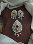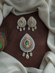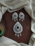 This set is available in multiple colour stone options, allowing you to match it effortlessly with different outfits. It comes in two premium polish variants – a sleek rhodium silver finish for a modern minimal vibe, and a stunning two-tone diamond polish (gold with silver touch) for a richer, festive look.