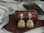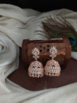 Description: "Adorn your style with our elegant Diamond Look Zircon Jhumki Earrings, available in three enchanting plating options: Rose-Gold, Rhodium (Silver), and Gold. These meticulously crafted jhumkis boast a timeless appeal, adding sophistication and charm to your look for any occasion."
