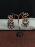 Make a statement with these Beautiful Peacock Design Monzonite Stone Silver Earrings in ruby and green color. The intricate peacock design and the combination of ruby and green monzonite stones make these earrings a unique and eye-catching addition to your jewelry collection.