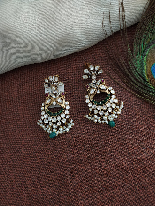 Bring out your inner diva with these Beautiful Peacock Design Monzonite Stone Silver Earrings.
