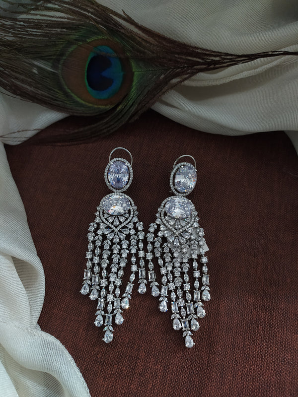 Discover elegance and brilliance with our DIAMOND LOOK SILVER PLATED SIGNITY STUDDED DANGLERS.
