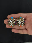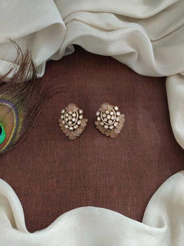 Elegant Moissanite stone stud earrings in Victorian finish, available in vibrant colors including Navaratna, Mint, Red, Baby Pink, and Coral. Designed to add a timeless sparkle to your everyday or festive look. Lightweight yet rich in design.