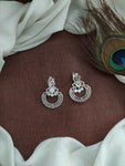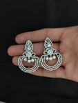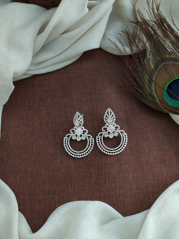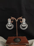 Elegant chandbali earrings crafted in a sleek silver (rhodium) finish, adorned with sparkling full white zircon stones. A timeless design ideal for ethnic and Indo-western looks. Features a secure push-back closure for comfortable wear.