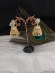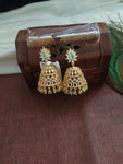 This exquisite Jhumka is crafted from gold-plated metal and adorned with stunning Zircon Stones. Its intricate design adds a beautiful touch to any outfit, with the stone dangling elegantly. It is available in two captivating colors - mint and white - ensuring versatility to match various ensembles. Whether you're attending a formal event or a casual gathering, this Jhumka is the perfect accessory to elevate your style and make a statement with its exquisite craftsmanship and timeless appeal.