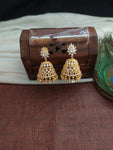 This exquisite Jhumka is crafted from gold-plated metal and adorned with stunning Zircon Stones. Its intricate design adds a beautiful touch to any outfit, with the stone dangling elegantly. It...