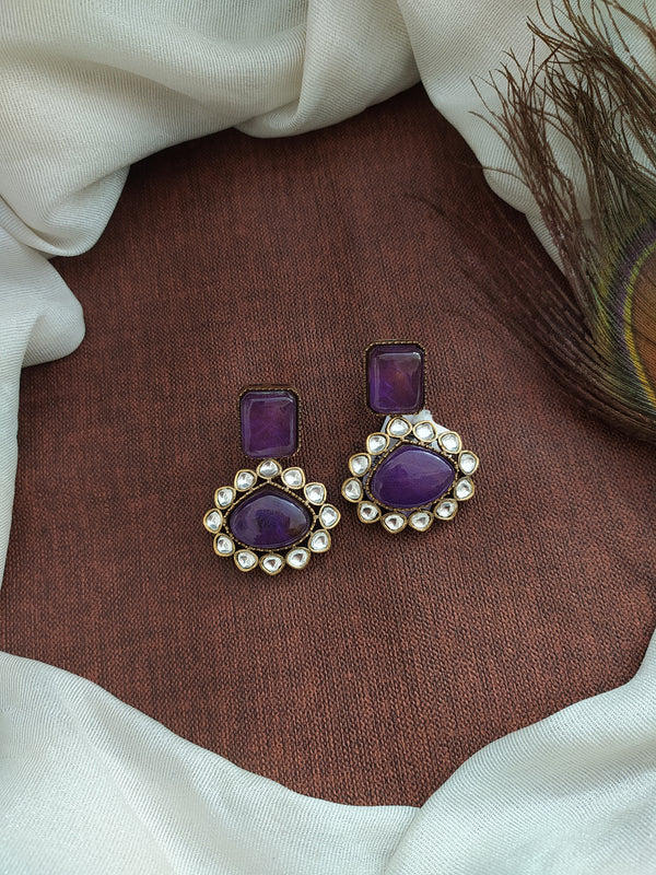 • Violet Polki's Regal Touch: Channel your inner royalty with our Violet Polki Stone Victorian Earrings. The rich violet hue symbolizes luxury and wisdom, while the uncut polki stones add a touch of vintage charm.