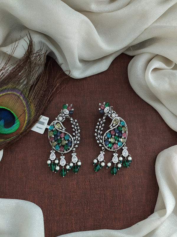 Embrace the timeless allure of the Victorian era with these exquisite zircon and diamond stud earrings featuring delicate danglers.