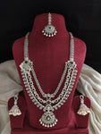 An exquisite zircon layered necklace set crafted with emerald and white premium CZ stones, giving a luxurious diamond-like shine. Ideal for weddings, festive occasions, and traditional attire. Comes with matching...