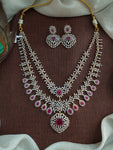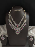 A stunning zircon layered necklace set crafted with premium ruby and white CZ stones for a rich diamond-like brilliance. Perfect for weddings, receptions, festive occasions, or pairing with silk sarees and lehengas. Comes with matching earrings for a graceful, complete look.