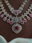A stunning zircon layered necklace set crafted with premium ruby and white CZ stones for a rich diamond-like brilliance. Perfect for weddings, receptions, festive occasions, or pairing with silk sarees...