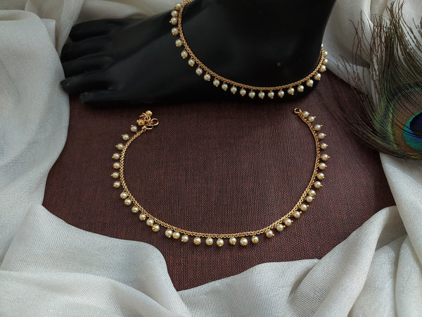 Step into grace with our Simple Pearl Anklets, designed to add a touch of elegance to any outfit. These anklets feature delicate pearls strung seamlessly, making them perfect for casual wear, festive occasions, or traditional celebrations. Their timeless design ensures they blend effortlessly with any attire, offering a subtle yet captivating charm.