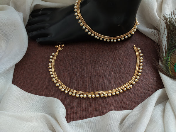 Step into grace with our Simple Pearl Anklets, designed to add a touch of elegance to any outfit. These anklets feature delicate pearls strung seamlessly, making them perfect for casual wear, festive occasions, or traditional celebrations. Their timeless design ensures they blend effortlessly with any attire, offering a subtle yet captivating charm.