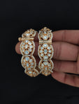 - Gold Plated Grandeur: The bangles feature a beautiful gold plating that adds a touch of sophistication and warmth to your look. The plating ensures a long-lasting shine and complements the brilliance of the moissanite stones.