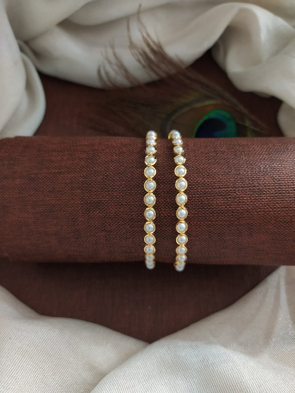 These elegant pearl bangles are crafted using freshwater / cultured semi-precious pearls, offering a refined traditional look with a premium finish. Perfect for festive wear, ethnic outfits, weddings, or styling with your existing gold/glass bangles.