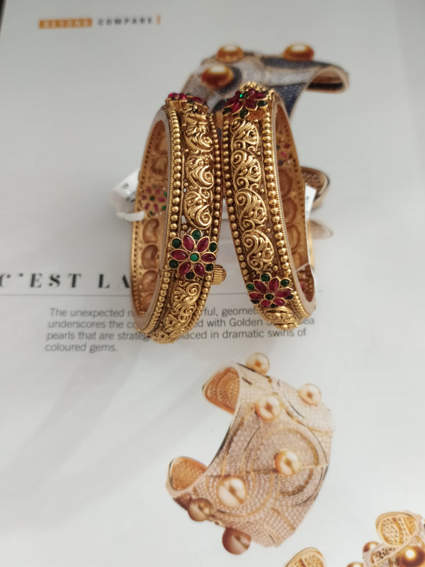 Crafted in a traditional matt antique finish, this screw-type kada blends timeless design with durability. Designed for a secure fit, it’s ideal for festive, traditional, or everyday ethnic wear. Please note, prices are for a single piece.