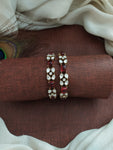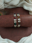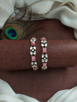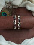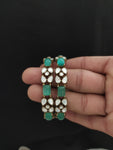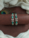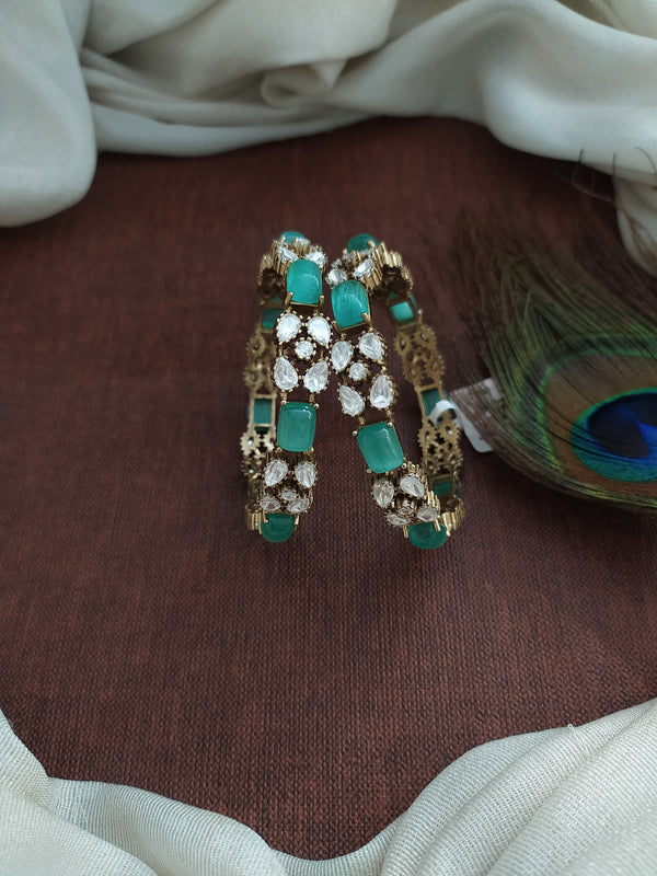 Add a touch of regal charm to your ensemble with these Victorian Bangles, beautifully adorned with Moissanite stones for an elegant sparkle. Crafted in a Victorian finish, these bangles are available in all trending colors: Navratna, Mint, Baby Pink, Green, Violet, and Ruby. These timeless pieces are perfect for any occasion, whether you're attending a festive celebration, a wedding, or looking to add a statement accessory to your everyday attire.