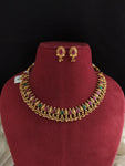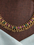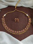 A sleek and elegant antique minimal kemp necklace set crafted in traditional temple style. Designed with premium kemp stones, available in two beautiful combinations — full kemp (ruby red) and...