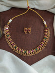 A sleek and elegant antique minimal kemp necklace set crafted in traditional temple style. Designed with premium kemp stones, available in two beautiful combinations — full kemp (ruby red) and kemp with green. Comes with matching earrings, perfect for festive wear, traditional events, temple functions, and pairing with silk sarees or ethnic outfits.