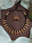 A classic black thread necklace set featuring beautifully crafted mango-shaped pendants paired with matching mango studs. Lightweight, traditional, and versatile—perfect for casual ethnic looks, festive wear, and daily styling. A...
