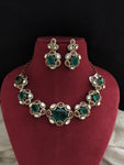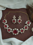 A timeless Victorian finish necklace set crafted with moissanite stones for a dazzling diamond-like look. Perfect for receptions, engagements, and festive occasions. Comes with matching earrings for a complete statement look.