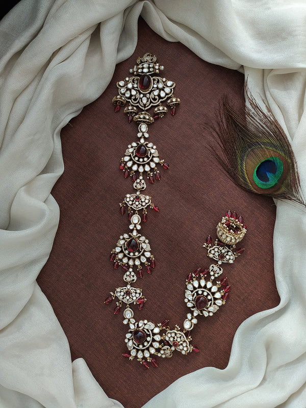 Elegant Victorian-style hair choti crafted with premium semi-precious Moissanite stones. This contemporary take on a traditional hair accessory adds a regal touch to any festive or bridal look. Available in...