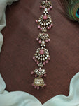 Elegant Victorian-style hair choti crafted with premium semi-precious Moissanite stones. This contemporary take on a traditional hair accessory adds a regal touch to any festive or bridal look. Available in stunning colors: mint, green, red, baby pink, and violet — perfect to complement your sarees, lehengas, or Indo-western outfits.