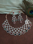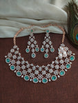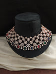 Elevate your look with this AD & Zircon stone Heavy choker set. Crafted in a rose gold polish and available in three trendy colors - Navaratan, Mint, and Baby Pink...