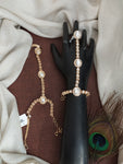 Elegant hathpan crafted with uncut diamond-style polki kundan stones in full white. Designed with a connecting bracelet-to-ring chain, this versatile accessory pairs beautifully with any outfit or jewelry set — traditional or modern. Please note: Price is for a single piece, not a pair.