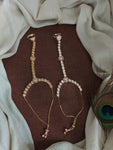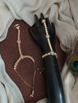 Elegant hathpan crafted with uncut diamond-style polki kundan stones in full white. Designed with a connecting bracelet-to-ring chain, this versatile accessory pairs beautifully with any outfit or jewelry set — traditional or modern. Please note: Price is for a single piece, not a pair.