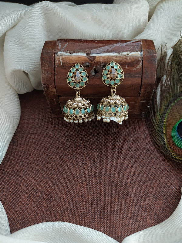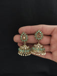 With the unique and captivating combination of uncut polki stones, these Uncut Polki Stone Mehandi Jhumki are sure to become a cherished part of your jewelry collection.