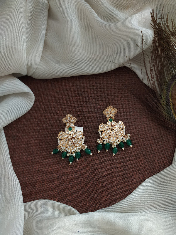 Adorn yourself with the exquisite charm of our Gold-Plated Kundan Floral Earrings. These stunning earrings are crafted with intricate kundan and polki stones, enhanced by delicate bead drops. Available in a variety of vibrant colors, including Green, Violet, Mint, and Red, these earrings are perfect for adding a touch of elegance and sophistication to any outfit. Ideal for weddings, festivals, and special occasions, these floral earrings are a timeless addition to your jewelry collection.