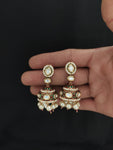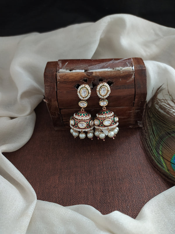 Elevate your jewelry collection with these stunning Kundan Jhumki, featuring intricate Meenakari detailing and delicate pearl drops. These handcrafted earrings blend traditional artistry with modern elegance, making them perfect for weddings,...