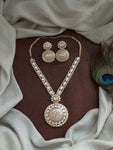 Celebrate Diwali in style with this Classic Kundan Circular Pendant Necklace Set, featuring an intricate floral design. Crafted with meticulous detail, the pendant showcases the beauty of Kundan stones, arranged in a traditional yet timeless pattern. This elegant set comes with matching earrings to complete the look, making it perfect for festive celebrations, weddings, and other special occasions. The set is ideal for adding a touch of sophistication and festive charm to your attire, making it a must-have for your jewelry collection.