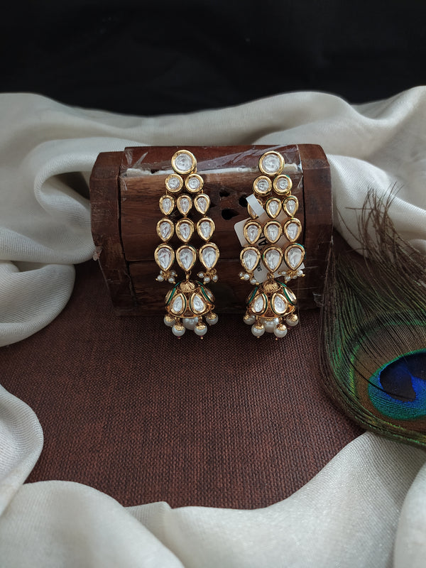 Elevate your jewelry collection with these stunning Kundan Jhumki, featuring intricate Meenakari detailing and delicate pearl drops. These handcrafted earrings blend traditional artistry with modern elegance, making them perfect for weddings, festive occasions, and cultural celebrations. The vibrant Meenakari enamel work enhances the charm, while the pearls add a graceful finishing touch.