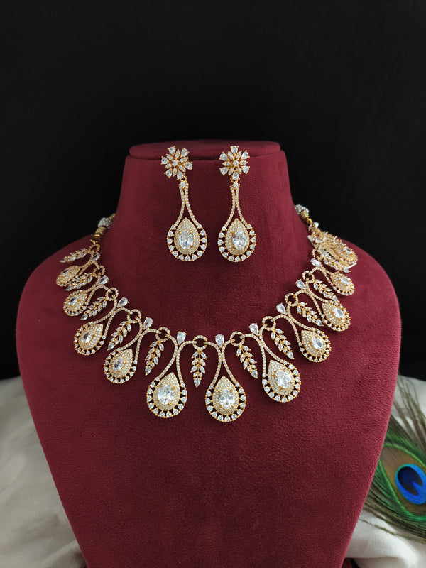Introducing our Beautiful Design Gold Plated Zircon Necklace, a gorgeous addition to your jewelry collection. The necklace features a stunning design with sparkling zircon stones beautifully arranged along the chain.