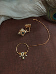 Antique and Kundan Fusion Bridal Necklace Set with Matching Earrings, Tikka, Nath, and Rings
