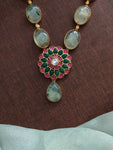 - Three Color Options: Choose from mint, pink, or blue Quartz chains, each enhanced with a Kundan pendant in red and green.