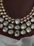 Exude regal charm on your special day with this Polki Kundan Bridal Haram Set, a luxurious creation featuring unshaped Kundan stones intricately adorned with delicate enamel work along the sides of...