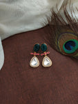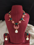 An opulent Polki Jadau Necklace Set, intricately crafted with semi-precious quartz and Jadau Kundan stones for a royal touch. Featuring a rich color combination of green, red, and white, this set exudes traditional elegance with a designer finish. A perfect choice for weddings, festive occasions, and grand celebrations.