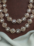 This exquisite double-layer Kundan Meenakari long haram is a perfect blend of tradition and elegance. Adorned with uncut Kundan stones in a pristine white finish, this masterpiece is available in two...