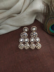 This exquisite double-layer Kundan Meenakari long haram is a perfect blend of tradition and elegance. Adorned with uncut Kundan stones in a pristine white finish, this masterpiece is available in two regal Meenakari shades—blue and green. The intricate craftsmanship and matching dangling earrings make it an ideal choice for weddings, grand celebrations, and festive occasions.