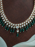 Presenting a U-Shaped Kundan White Long Haram Set, a perfect blend of traditional charm and modern elegance. This striking haram is adorned with Kundan / Uncut Diamond stones, meticulously designed to reflect opulence and grace. The U-shaped necklace is accentuated with green pear-shaped beads, adding a splash of color and sophistication. The set comes with matching earrings, completing the look with finesse. Whether it’s for weddings, festive occasions, or grand celebrations, this haram set is bound to turn heads and elevate your ensemble.