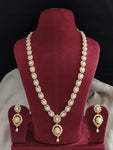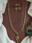An elegant AD long haram set crafted with real color semi-precious stones, designed to give a rich and graceful statement look. Available in sophisticated shades of Full Coral, Full Black,...