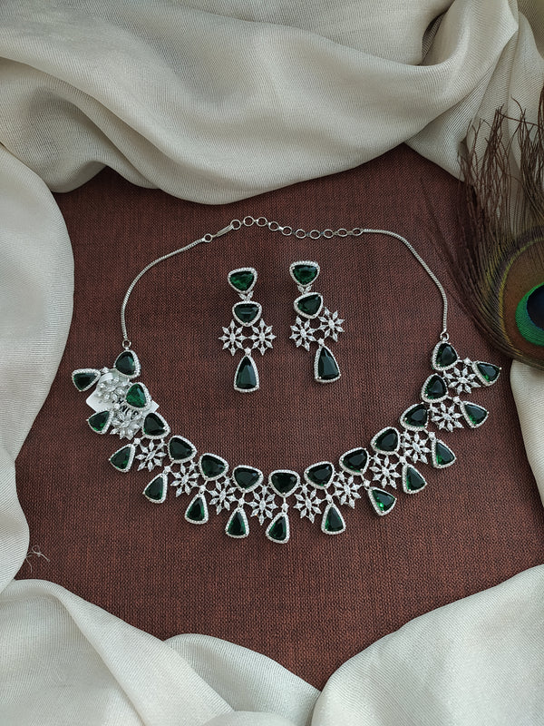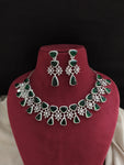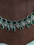 Elevate your elegance with our Exquisite Zircon Choker Necklace Set, meticulously crafted with precision and artistry. This stunning piece features a shimmering rhodium finish that enhances the brilliance of the high-quality zircon stones. Available in four captivating colors - green, baby pink, violet, and blue - this choker set is designed to complement any ensemble with its sophisticated charm. The set includes matching earrings, completing the look with a touch of glamour.