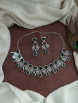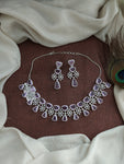 This choker set is crafted with premium zircon stones and a rhodium finish. Due to the nature of handcrafted jewelry, slight variations may occur, making each piece unique.